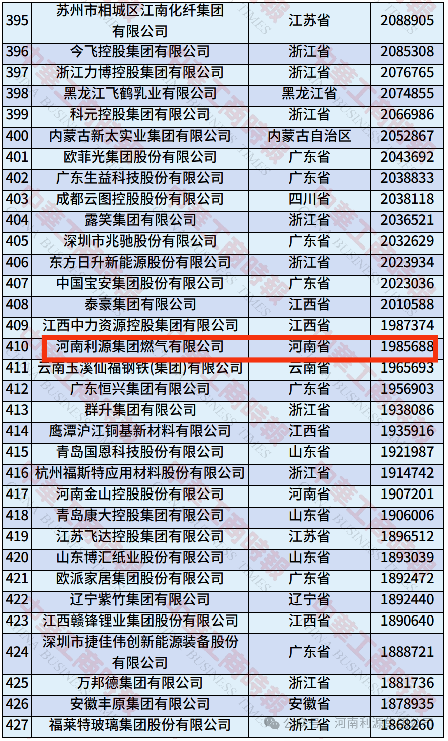 近日,據(jù)全國(guó)工商聯(lián)發(fā)布的“2025中國(guó)制造業(yè)民營(yíng)企業(yè)500強(qiáng)榜單”顯示,河南利源集團(tuán)燃?xì)庥邢薰景裆嫌忻涣性摪駟?/span>第410位。在復(fù)雜多變的外部環(huán)境下,再次展現(xiàn)出強(qiáng)勁的發(fā)展韌性與強(qiáng)大的內(nèi)生增長(zhǎng)動(dòng)力。